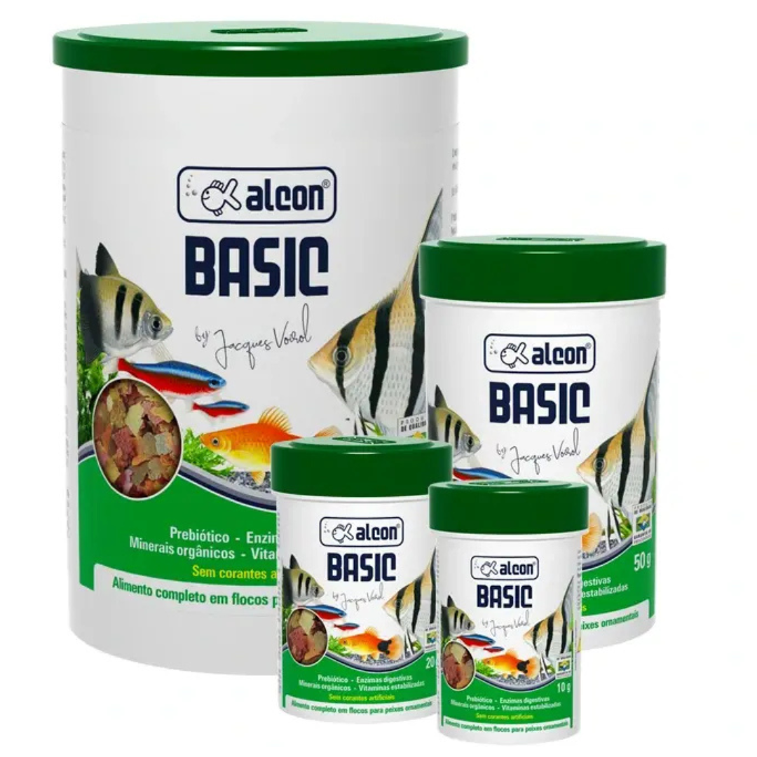 Alcon Basic foi elaborado especialmente para a grande variedade de peixes ornamentais. Ingredientes naturais e altamente selecionados tornam este alimento completo para uma nutrição de qualidade. Para maior biodisponibilidade dos minerais ao organismo dos peixes, possui em sua composição minerais orgânicos quelatados. Esta formulação especial também contém Enzimas Digestivas e Prebiótico, que favorecem o desenvolvimento da flora intestinal benéfica, melhorando o aproveitamento dos nutrientes. Não contém corantes artificiais. Para a manutenção adequada dos aquários utilize a linha de testes, condicionadores e corretivos Labcon.