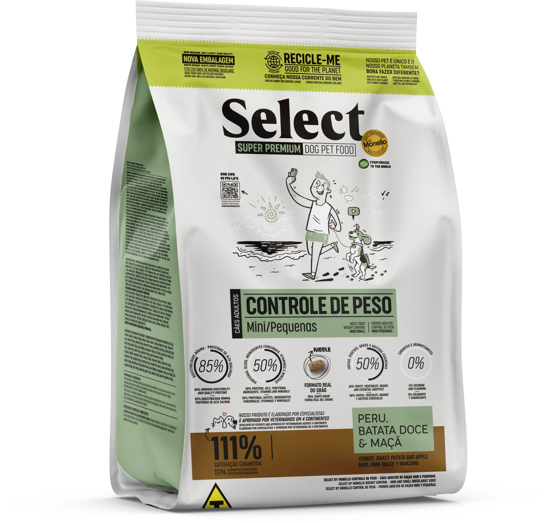 Ingredientes selecionados fontes de proteínas, óleos, ingredientes funcionais, vitaminas e minerais, mín. 50% (farinha de vísceras de aves - mín. 23%, farinha de salmão - mín. 0,5%, farinha de carne e ossos de perus - mín. 0,5%, óleo de aves, óleo de salmão - mín. 0,5%, hidrolisado de fígado de aves, mistura de ovos desidratados, farelo de glúten de milho 60, farelo de soja, biomassa de microalgas Schizochytrium sp. - mín. 0,1%, L-carnitina, levedura de cervejaria inativada desidratada, blend de prebióticos - mín. 0,1% - composto de: parede celular de levedura, galactooligossacarídeos, frutooligossacarídeos e levedura seca de cana de açúcar, hexametafosfato de sódio, sulfato de condroitina, sulfato de glicosamina, extrato de Yucca, lisina, vitaminas A, D3, E, C, K3, B1, B2, B6, B12, pantotenato de cálcio, ácido fólico, ácido nicotínico, biotina, cloreto de colina, minerais cloreto de sódio, cloreto de potássio, sulfato de manganês, sulfato de zinco, glicinato de zinco, sulfato de ferro, sulfato de cobre, iodato de cálcio, selenito de sódio, selênio metionina). Frutas, vegetais, grãos e aditivos essenciais, mín. 50% (grão de milho, farelo de trigo, quirera de arroz, mix concentrado de frutas e vegetais desidratados - composto de: farinha de batata doce - mín. 0,35%, maçãs - mín. 0,03%, bananas, mirtilos (blueberries) - mín. 0,01%, cenouras - mín. 0,03% e farinha de ervilhas - mín. 0,05%, polpa desidratada de beterraba - mín. 0,5% e aditivos antioxidantes BHA e BHT).